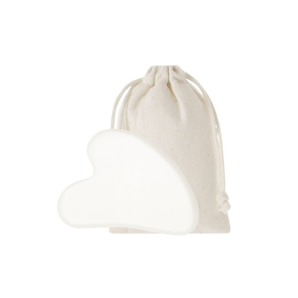 Masajeador facial elaborado en piedra jade blanca. Es ideal para complementar rutinas de cuidado facial. Presentada en bolsa de algodón natural.