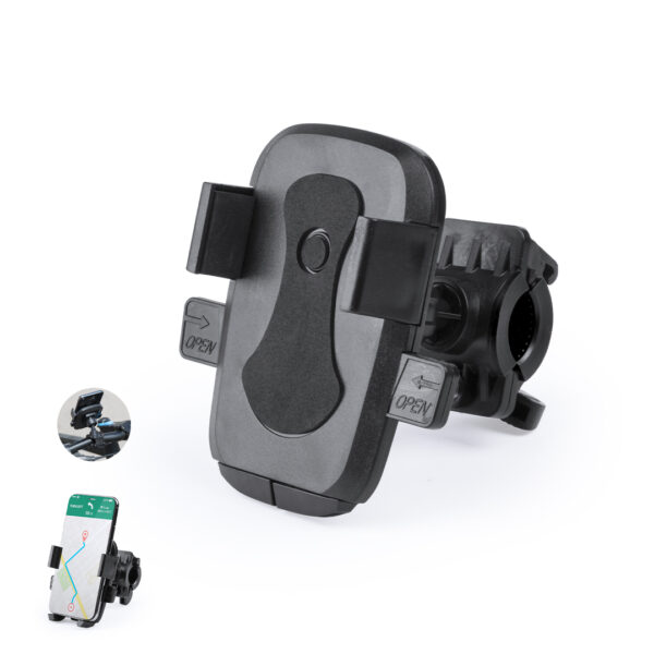 Práctico y resistente soporte de manillar para smartphone. Con 3 posiciones, rotación 360º y ángulo de inclinación de hasta 45º. Sólida pinza de agarre y presentado en atractiva caja de diseño.
