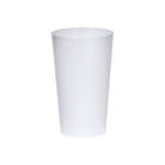 Vaso de 330 ml de capacidad en resistente y flexible material PP. Reutilizable y en acabado translúcido.